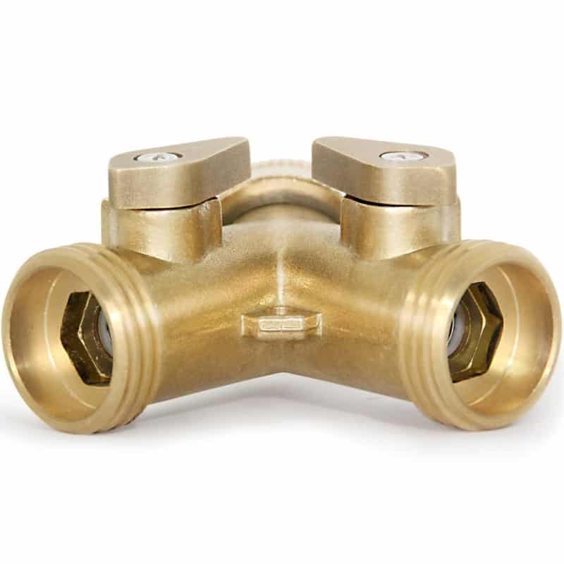 2 Way Brass Hose Splitter converts one faucet from your garden or sink into two independent manually operated outlets. It’s ideal for connecting to sprinklers, soaker hoses, and garden hoses for multiple watering, washing, and cleaning needs without needing to constantly move your hose around different areas. Both outlets have a US standard male threaded end that you can attach to various hose fittings. The Brass Hose Splitter is a simple, affordable way to convert one faucet into two. This handy little tool splits the water flow evenly between two hoses, making it perfect for filling buckets, watering plants, or cleaning. It’s made of brass for durability and features a corrosion-resistant finish that will keep it looking new for years to come.