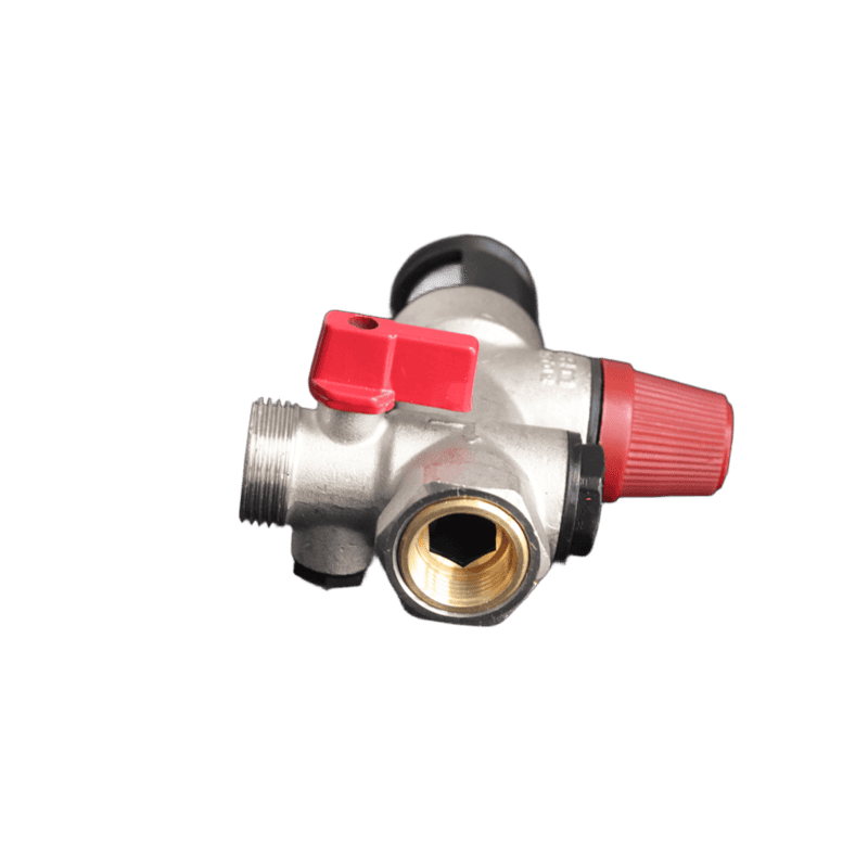 This brass hydraulic safety valve combines overpressure protection, pressure regulation, and system venting in a single unit. It streamlines the pipe layout nicely. It has a red knob that does two jobs: setting the valve’s pressure and manual venting. You can precisely adjust the pressure relief level to match your system’s needs. It’s a small, all-in-one safety part, widely used for small industrial hydraulic systems and home wall-hung boiler heating systems.