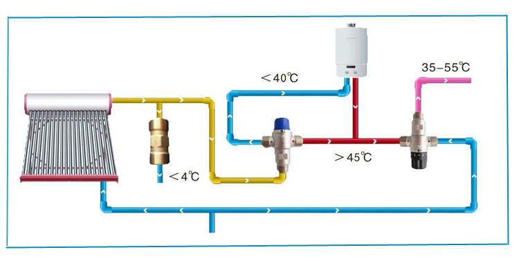 Thermostatic mixing valves have a built-in thermistor that detects outlet water temperature. Even if there’s a little change in the hot/cold water ratio or water pressure, the valve core adjusts quickly to compensate. It keeps the outlet temperature within your set range, stopping sudden temperature changes right from the start. Usually, it controls the outlet temperature deviation to within ±2℃. making it suitable for bathrooms, heating systems, and similar applications.