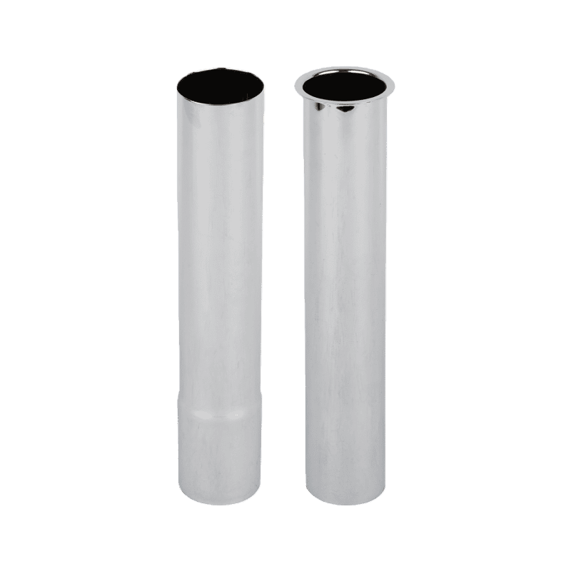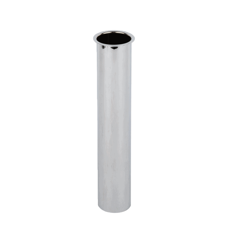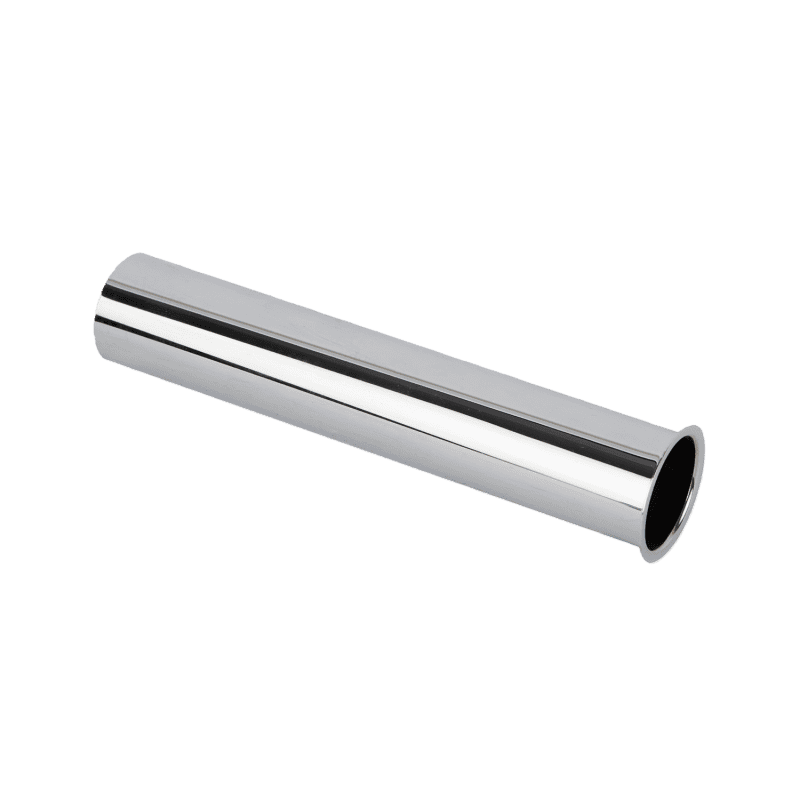 This chrome-plated flanged tailpiece is used to connect or extend the end of a pipeline. It has a straight tube shape, with a flange on one end for secure connection to fixtures or equipment. It is commonly used at the end of water supply or drainage lines, such as those for washbasins, bathtubs, or small appliances. Simple in structure and easy to install, it is a practical fitting for finishing pipeline connections.