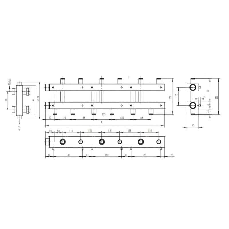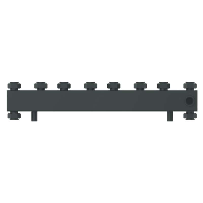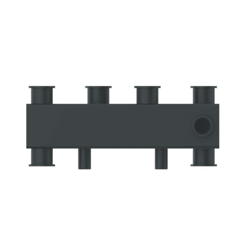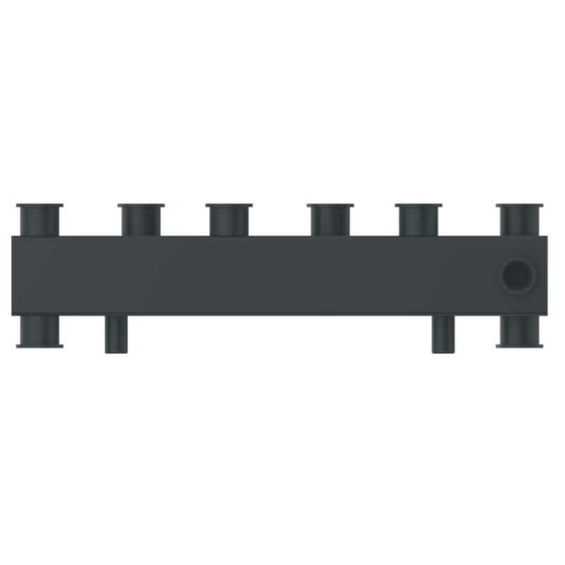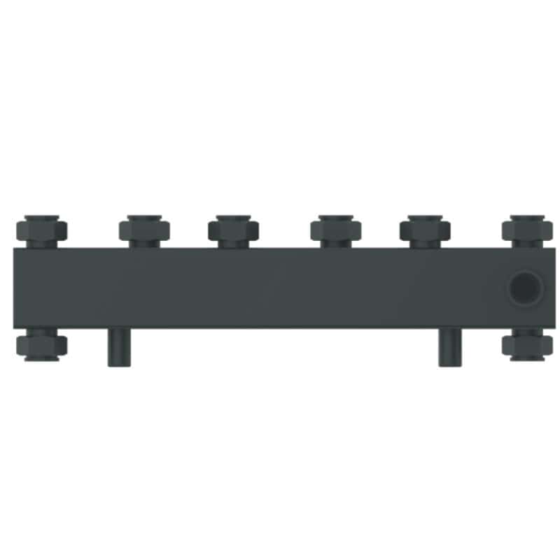 This distribution manifold is used to split fluid from one main line into several branch lines. Its main job is to make sure each branch gets a steady and even flow. It has multiple ports arranged in a balanced layout, allowing several branch pipes to be connected simultaneously. This helps keep the piping neat and the flow consistent. It is commonly used in systems such as underfloor heating, central air conditioning, and water supply or drainage systems. Keeping the flow more even across all branches helps avoid imbalance and improves overall system performance.