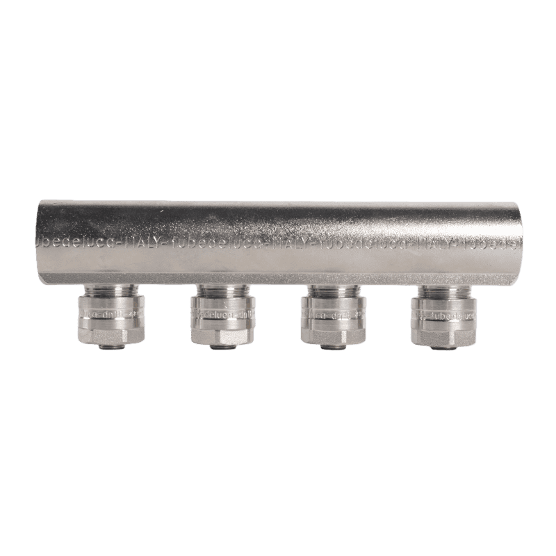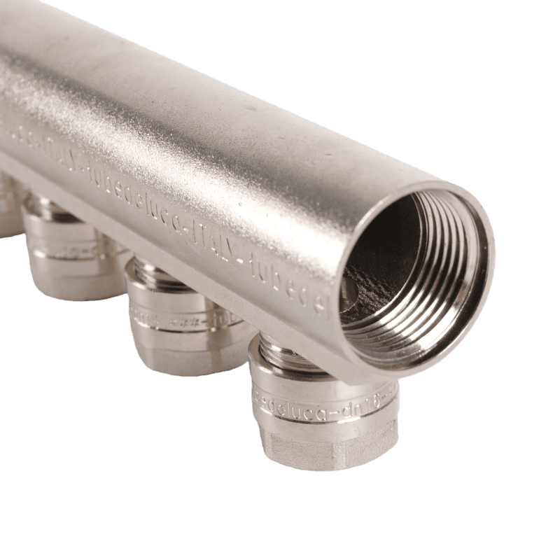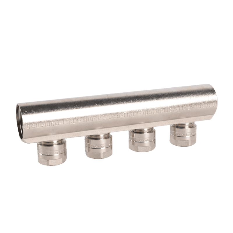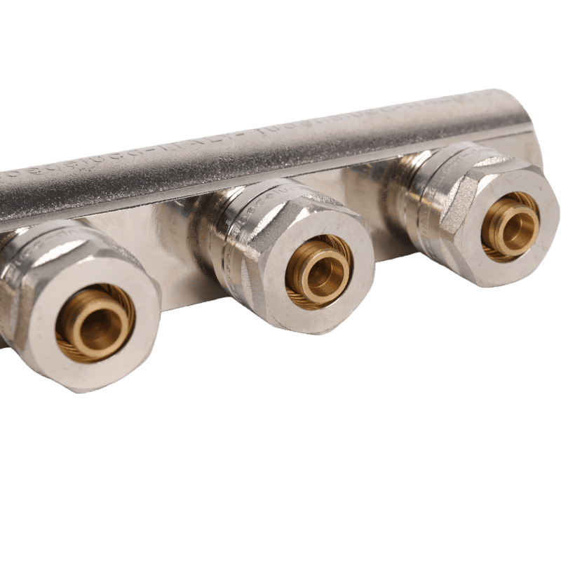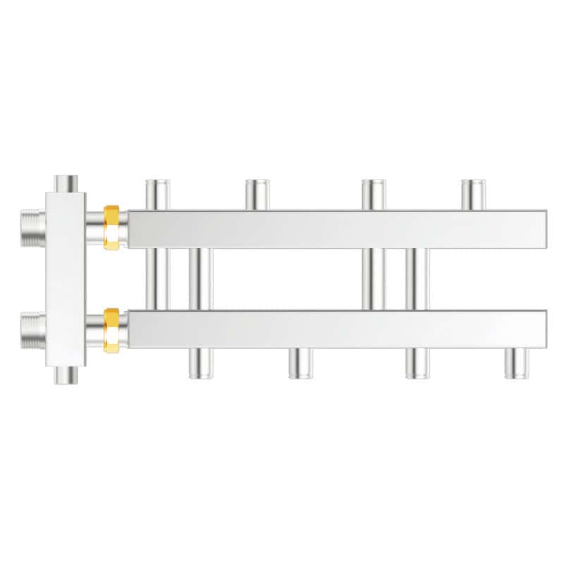 The multi-outlet distribution manifold is an important part at the end of a circulating water system. It is used to send water accurately to different pipes and collect water returning from the system. It can also adjust the total water flow flexibly according to the needs of different heating products, helping the system work efficiently and keeping water evenly balanced in all branches.