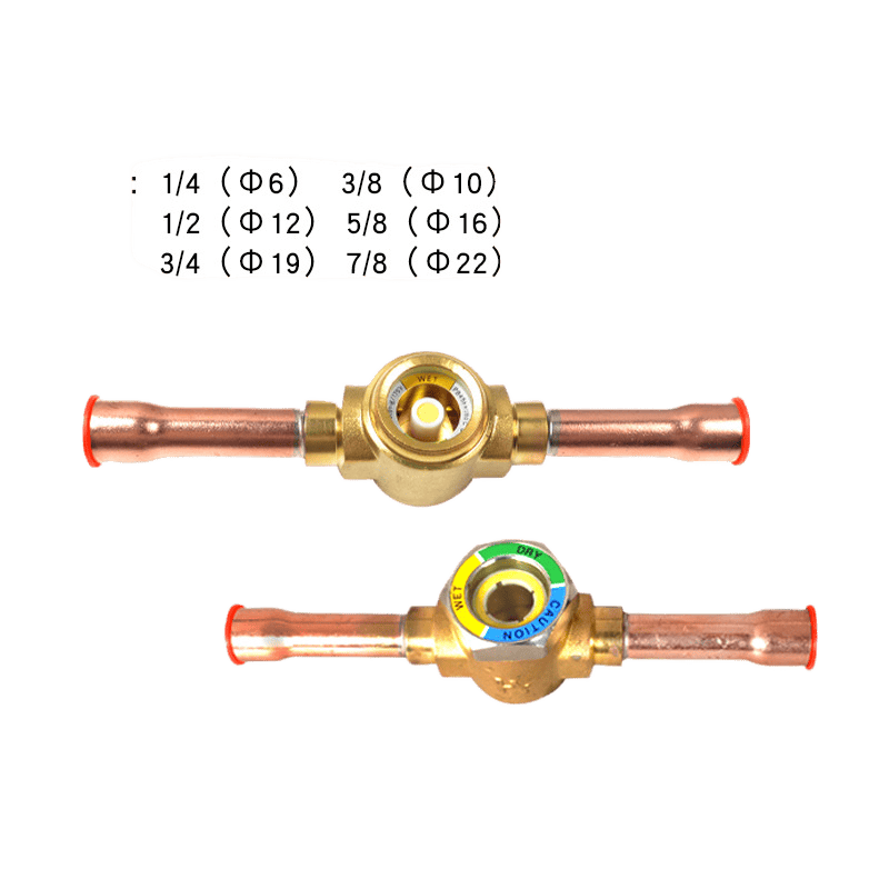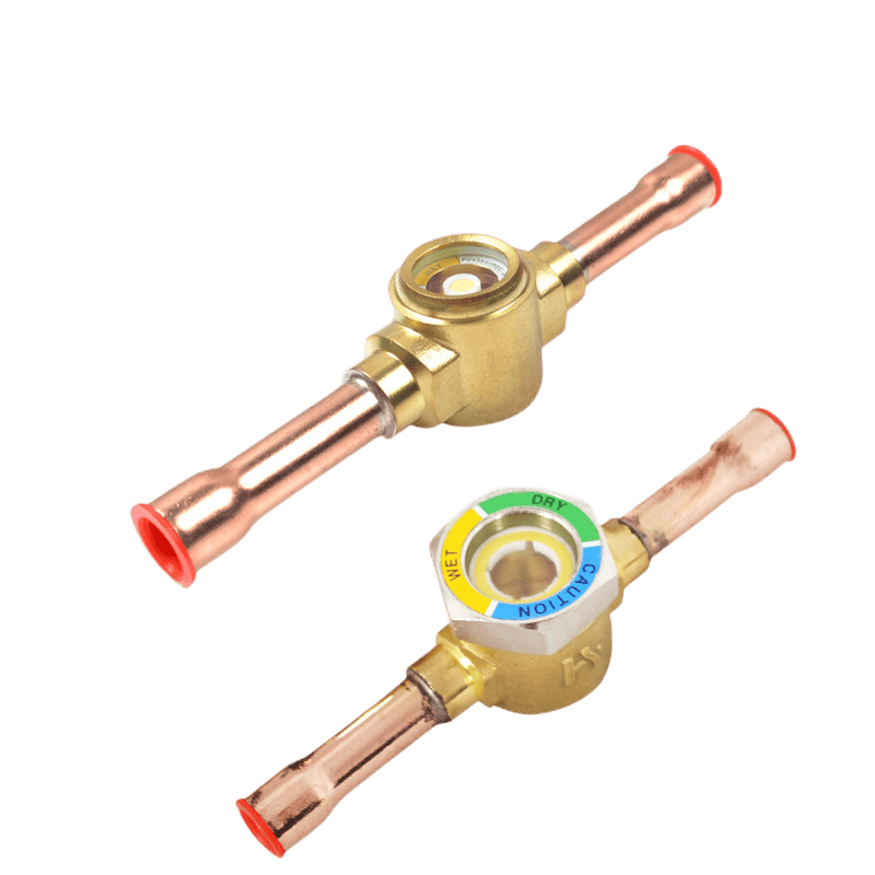 - Solid copper connections. The conventional sight glass is used in the liquid pipe of the refrigeration & air conditioning system, which is used to indicate the flow condition of the refrigerant, the water content in the refrigerant, and the flow condition of the oil in the oil separator.
