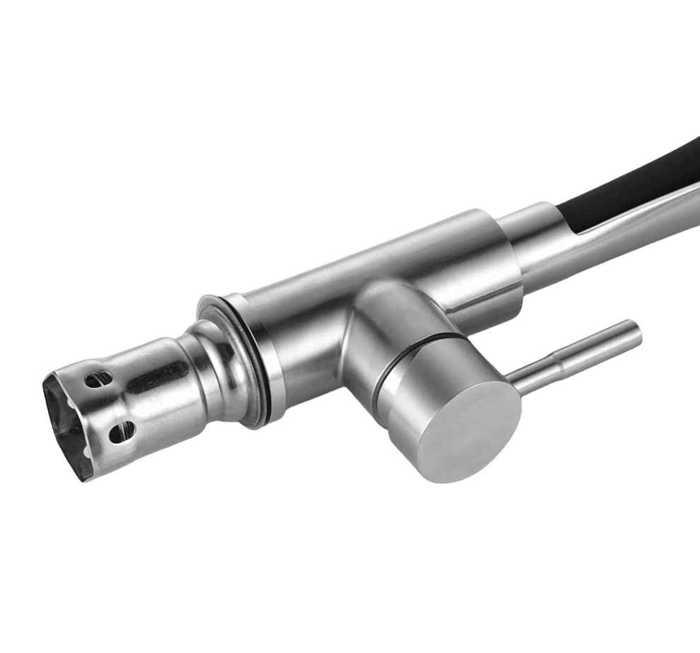 PPC glue-type pull-type sprayer has a longer service life than the traditional pull-down sprayer, and it is more convenient to clean the stubborn stains in the starting and dead corners with 360-degree rotation, giving you a clean and comfortable sink platform; the high curvature swan neck setting makes it easier for you to clean pans or other utensils.